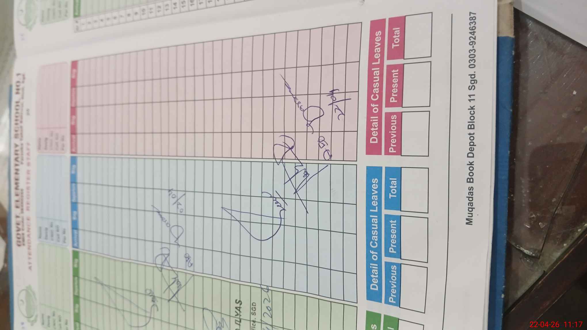 | CNIC | Full Name | Designation | R/C | Absence During Last Calender Month |