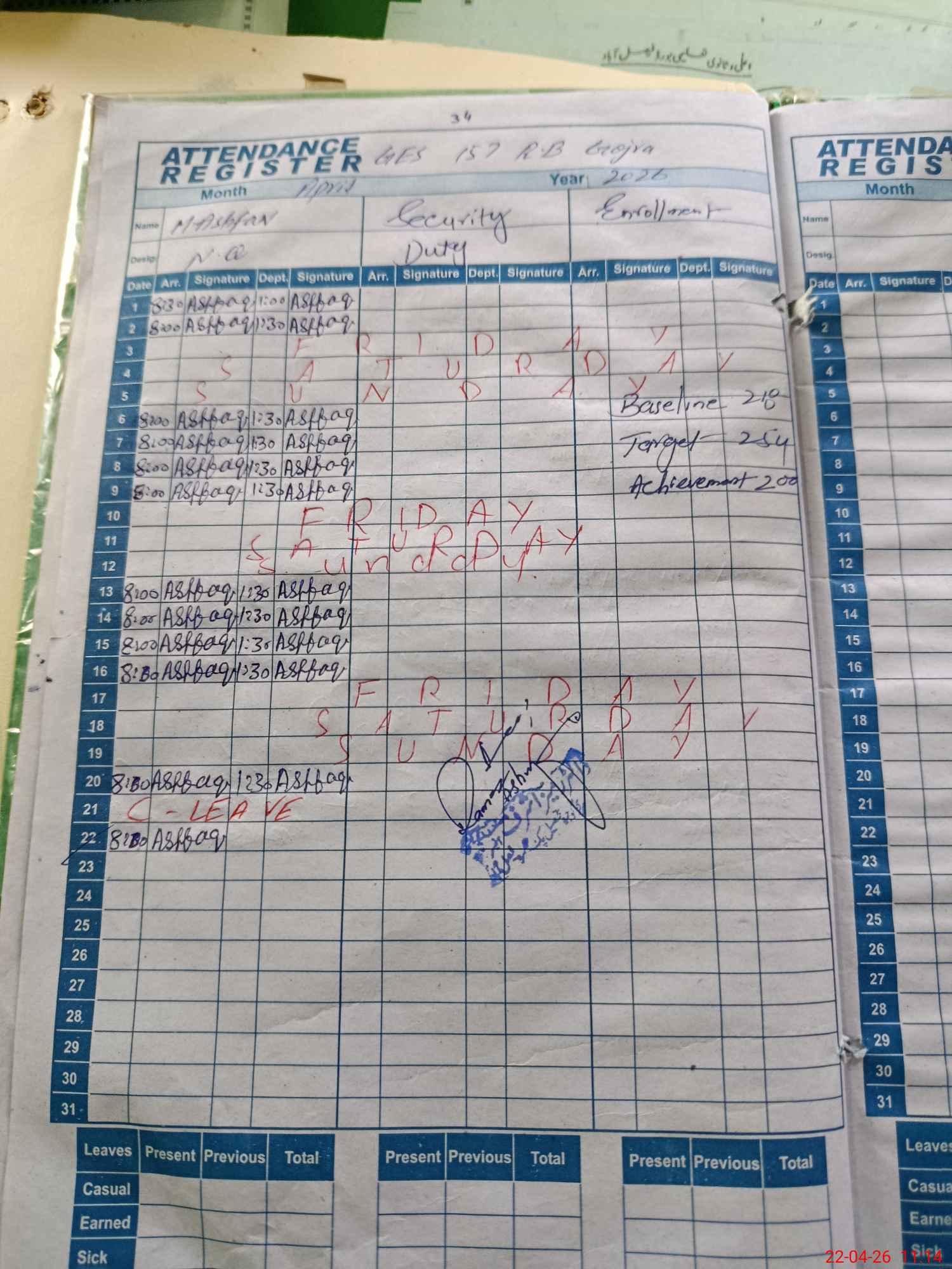 | 33**** | Ka**** Ul**** | PST Arts | Regular | 0 | 0 | 0 | 0 | 0 | 0 | 0 | 0 | 0 | Exam Duty |