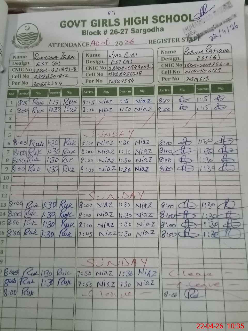 | 38**** | Mu**** Ba**** | EST Urdu | Regular | 0 | 0 | 0 | 0 | 0 | 0 | 0 | 0 | 0 | Exam Duty |
