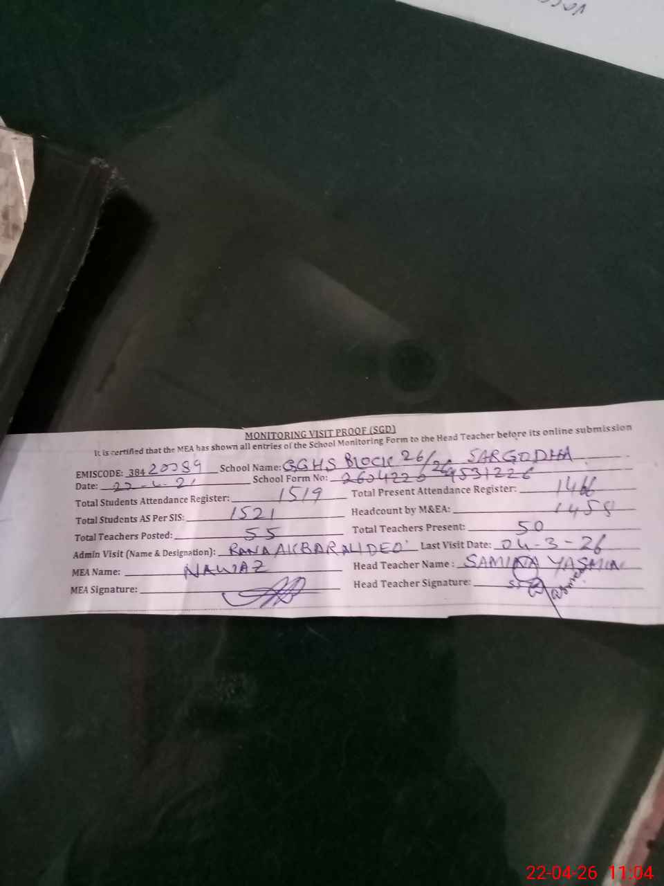 | EMIS Code: 38420089 | Name of School: GGHS BLOCK NO 27/26 SARGODHA | |||