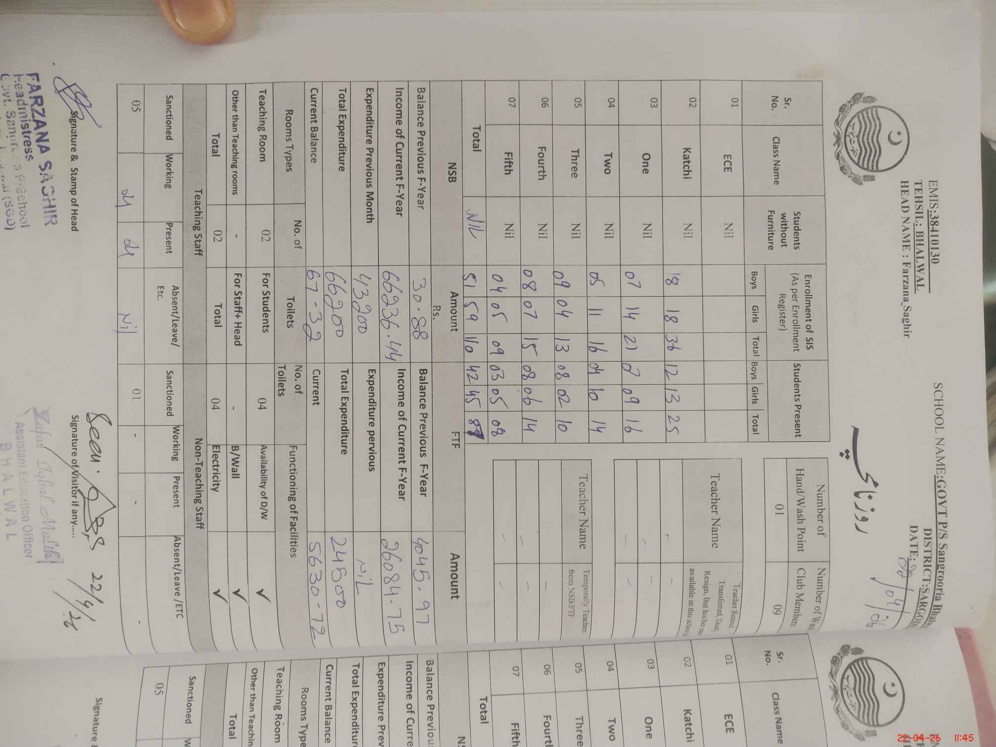 | EMIS Code: 38410130 | Name of School: GPS SANROORIA BHALWAL IJAZ COLONY | |||