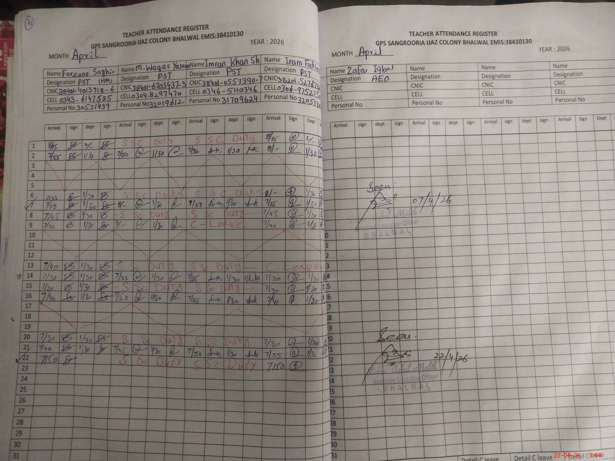 | 38**** | Im**** Kh**** Sh**** | PST Science/Maths | Regular | 0 | 0 | 0 | 0 | 0 | 0 | 0 | 0 | 0 | Exam Duty |