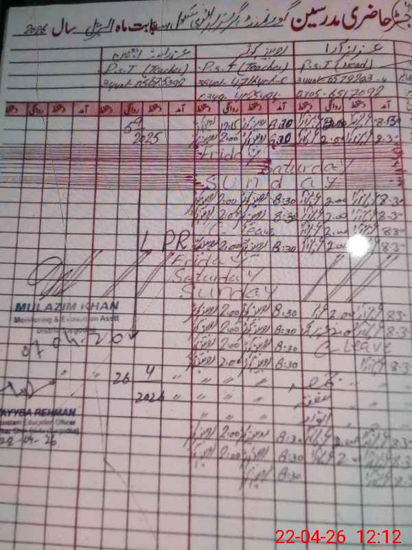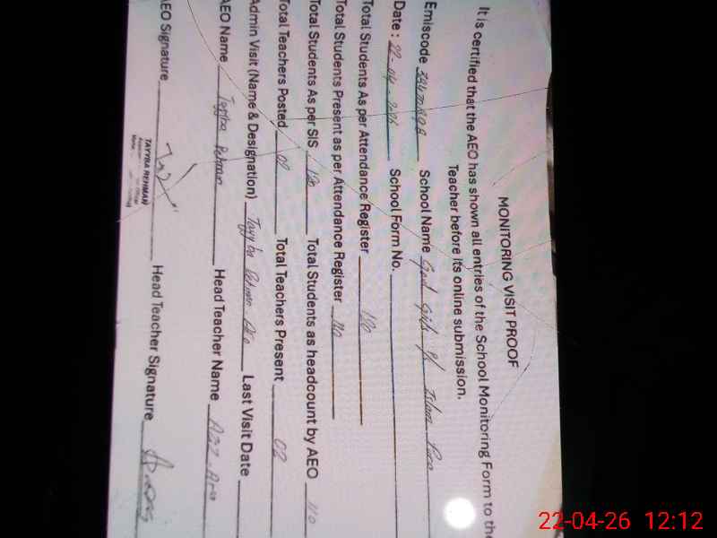 | Name: AZ**** AR**** Designation: (School Headmaster's/Headmistress's) PTC/JV Phone/Cell Number: 03**** |