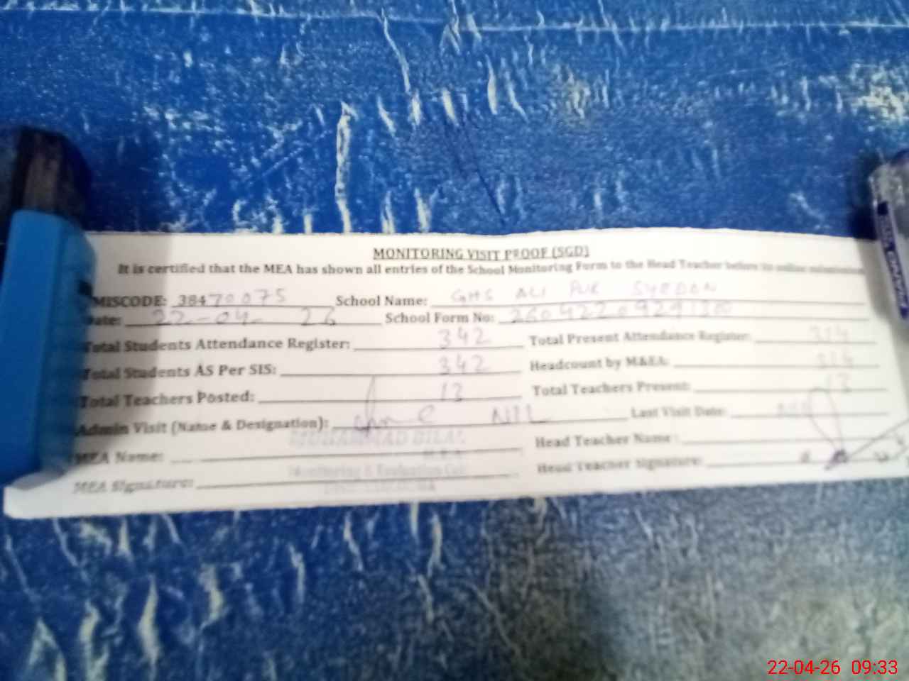 | EMIS Code: 38470075 | Name of School: GHS ALI PUR SYEDAN | |||