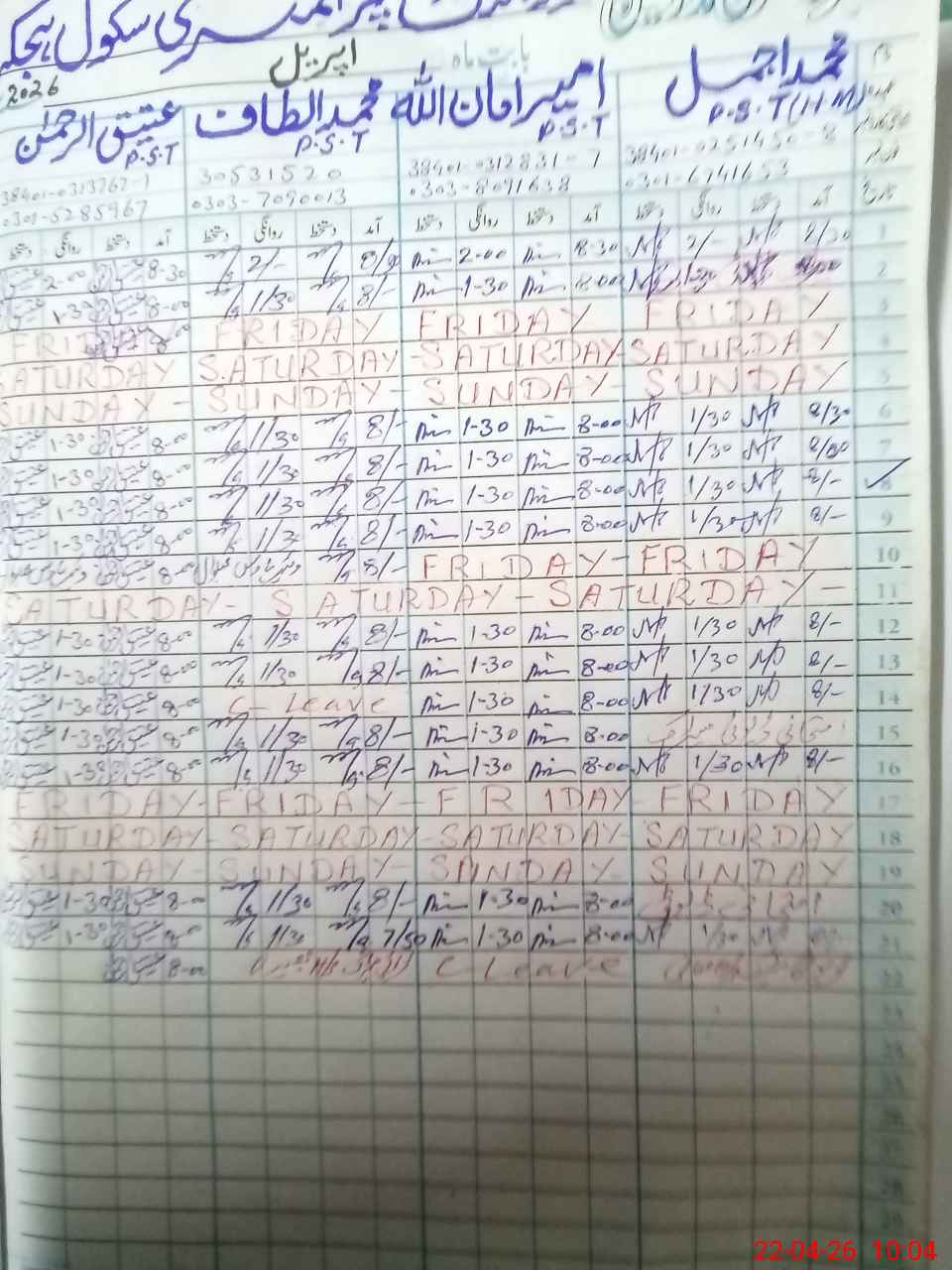 | 38**** | Mu**** Al**** | PST Arts | Regular | 0 | 0 | 0 | 0 | 0 | 0 | 0 | 0 | 0 | Exam Duty |