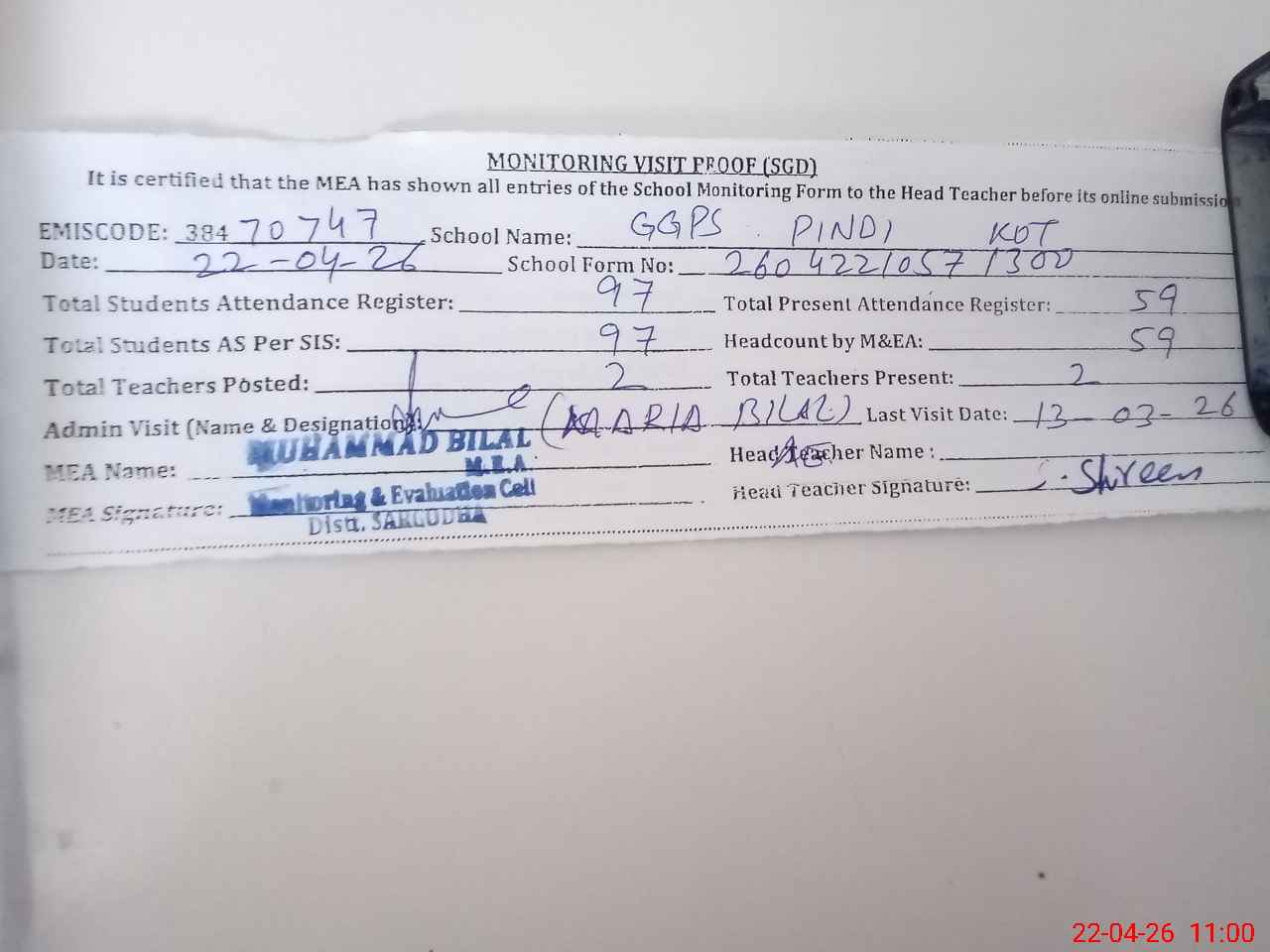 | EMIS Code: 38470747 | Name of School: GGPS PINDI KOT | |||