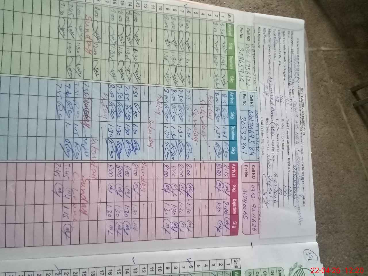 | Name: RE**** AN**** Designation: (School Headmaster's/Headmistress's) PTC/JV Phone/Cell Number: 03**** |