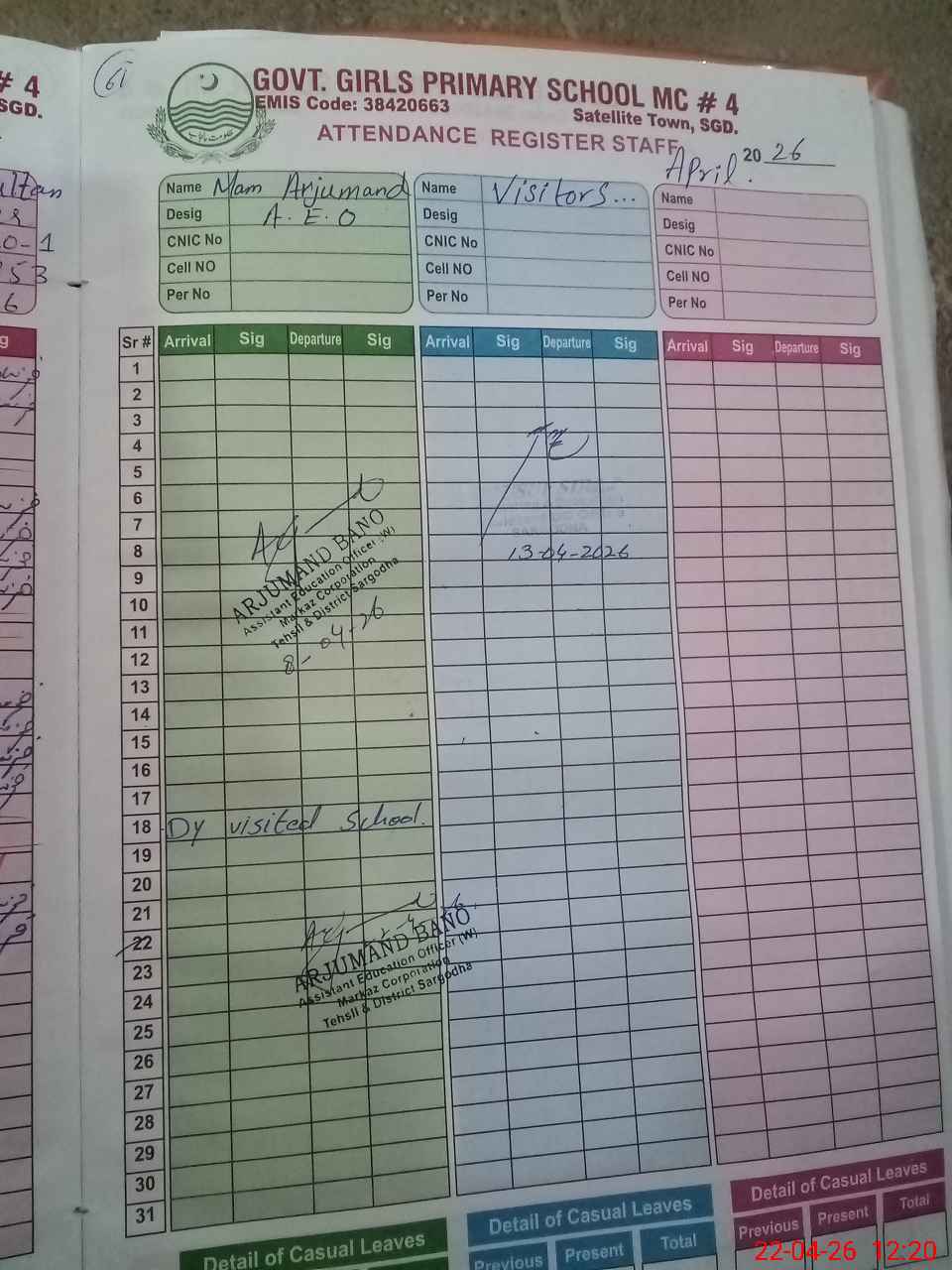 | EMIS Code: 38420663 | Name of School: GGPS MC NO.4 SATTELITE TOWN SARGODHA | |||