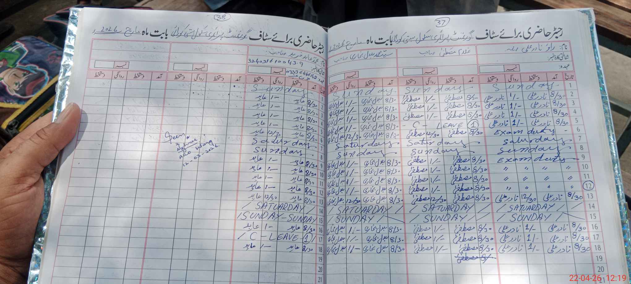 | CNIC | Full Name | Designation | R/C | Absence During Last Calender Month |