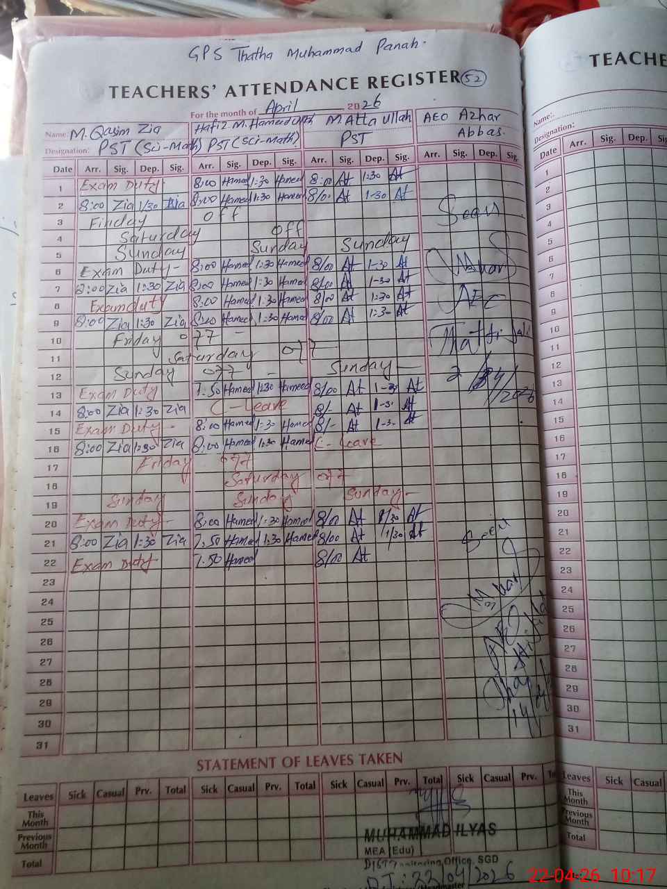 | 38**** | Mu**** Qa**** Zi**** | PST Science/Maths | Regular | 0 | 0 | 0 | 0 | 0 | 0 | 0 | 0 | 0 | Exam Duty |