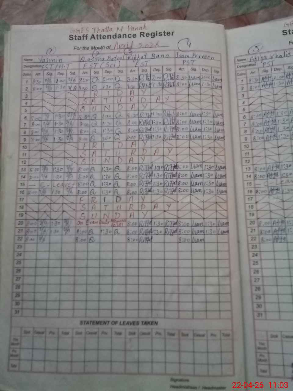 | Leave | Duty | Absent | Maternity | Medical | Ex- Pak |
