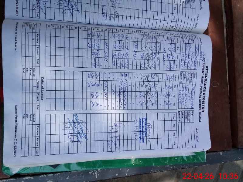 | EMIS Code: 38410348 | Name of School: GMPS CHAK NO.1 SB THABAL | |||