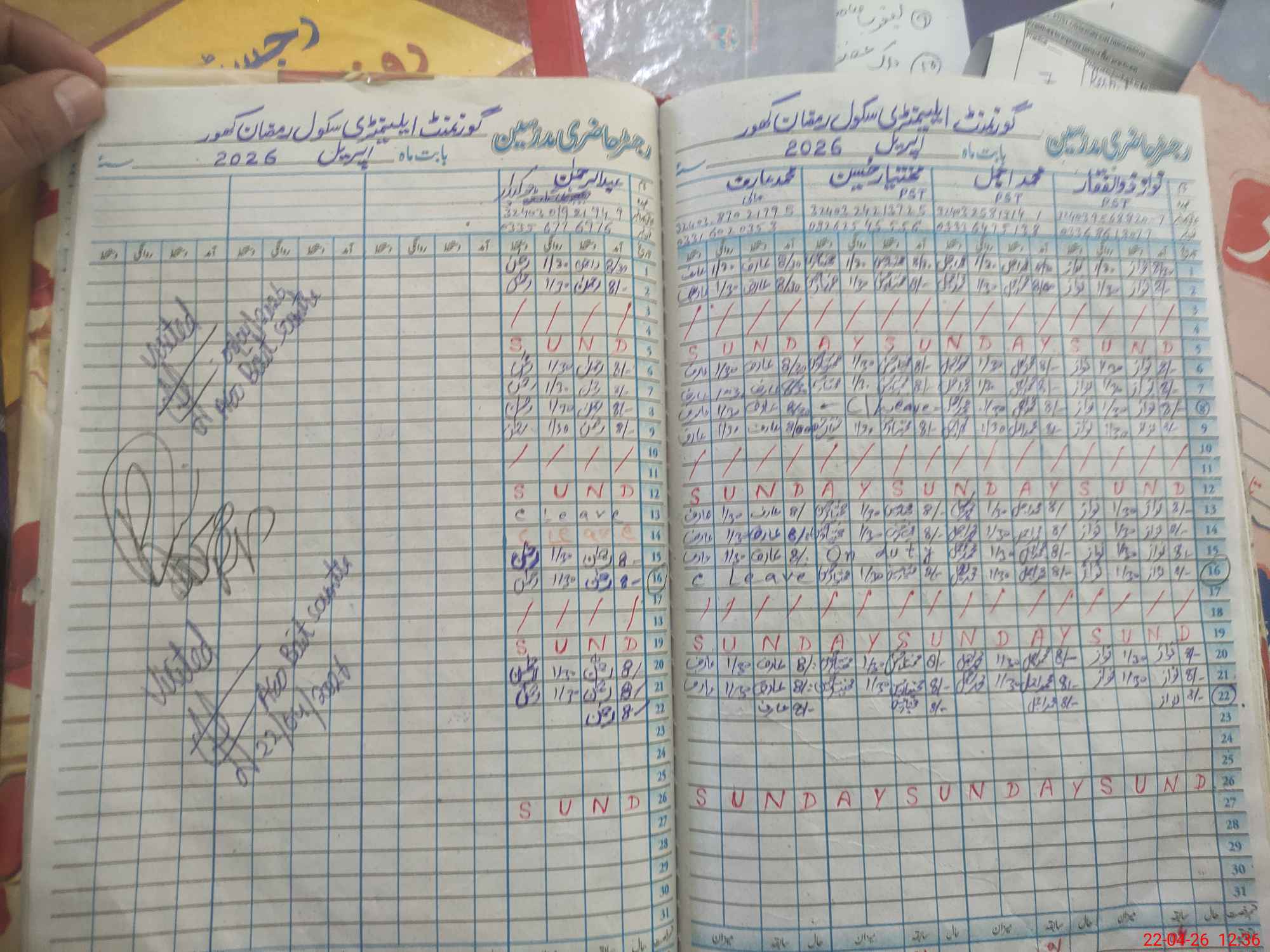| CNIC | Full Name | Designation | R/C | Absence During Last Calender Month |