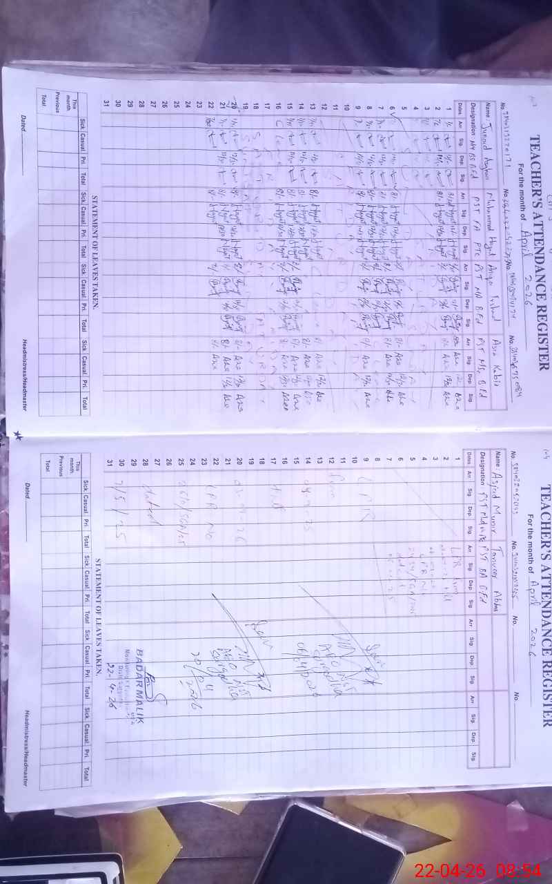 | Attendance Register | Head Teacher | MEA with School | Visit Proof |