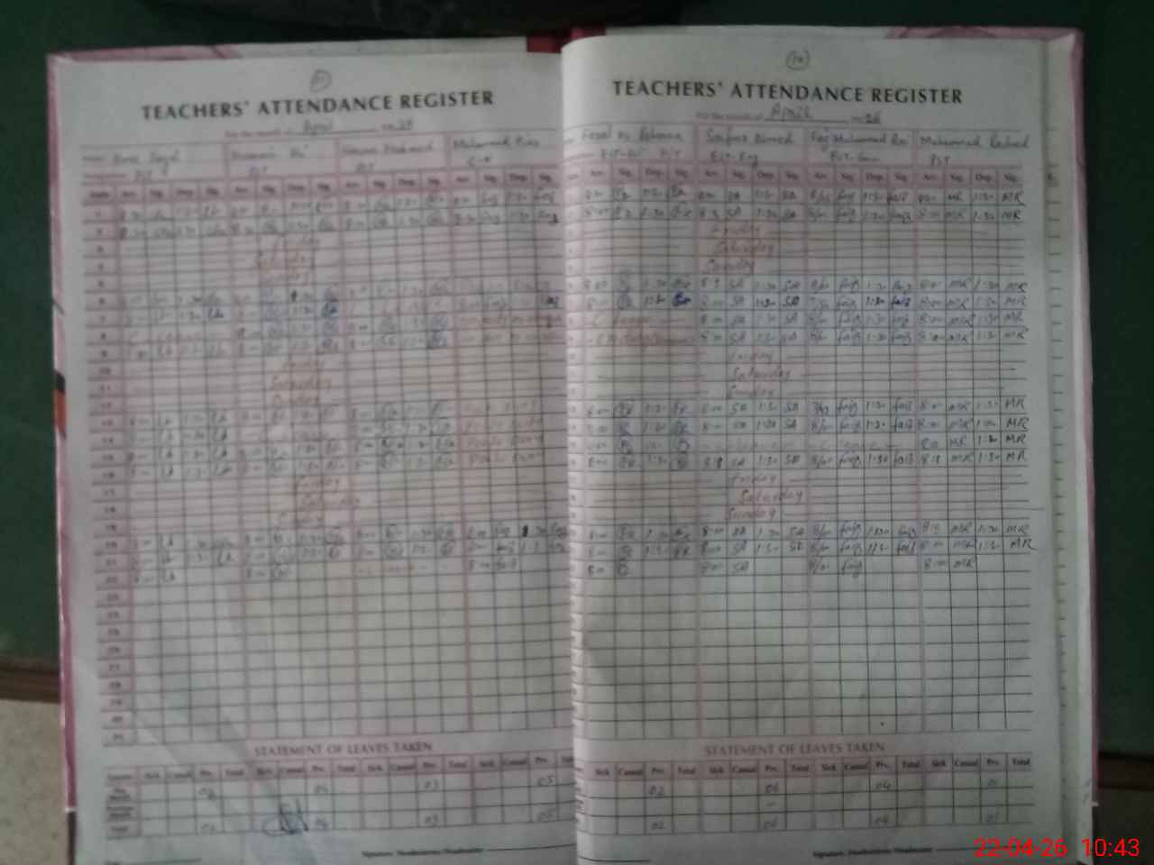 | Leave | Duty | Absent | Maternity | Medical | Ex- Pak |