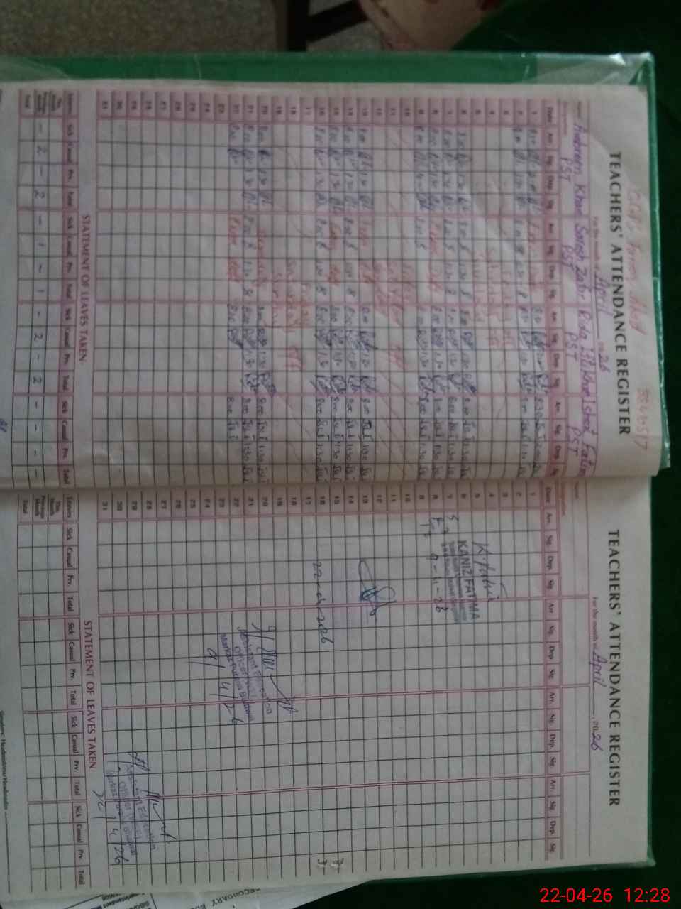 | 38**** | Sa**** Za**** | PST Science/Maths | Regular | 0 | 0 | 0 | 0 | 0 | 0 | 0 | 0 | 0 | Exam Duty |