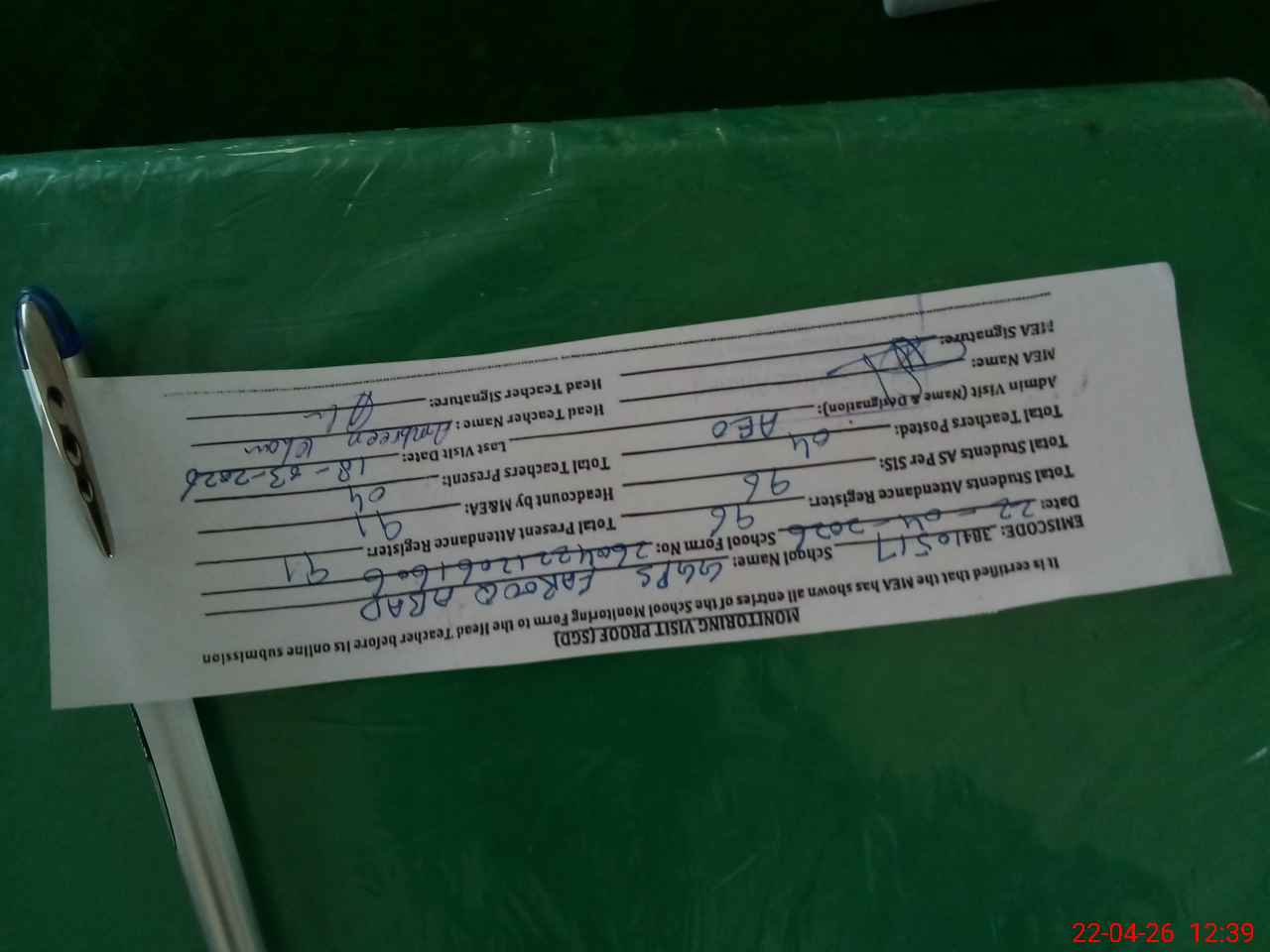 | Attendance Register | Head Teacher | MEA with School | Visit Proof |