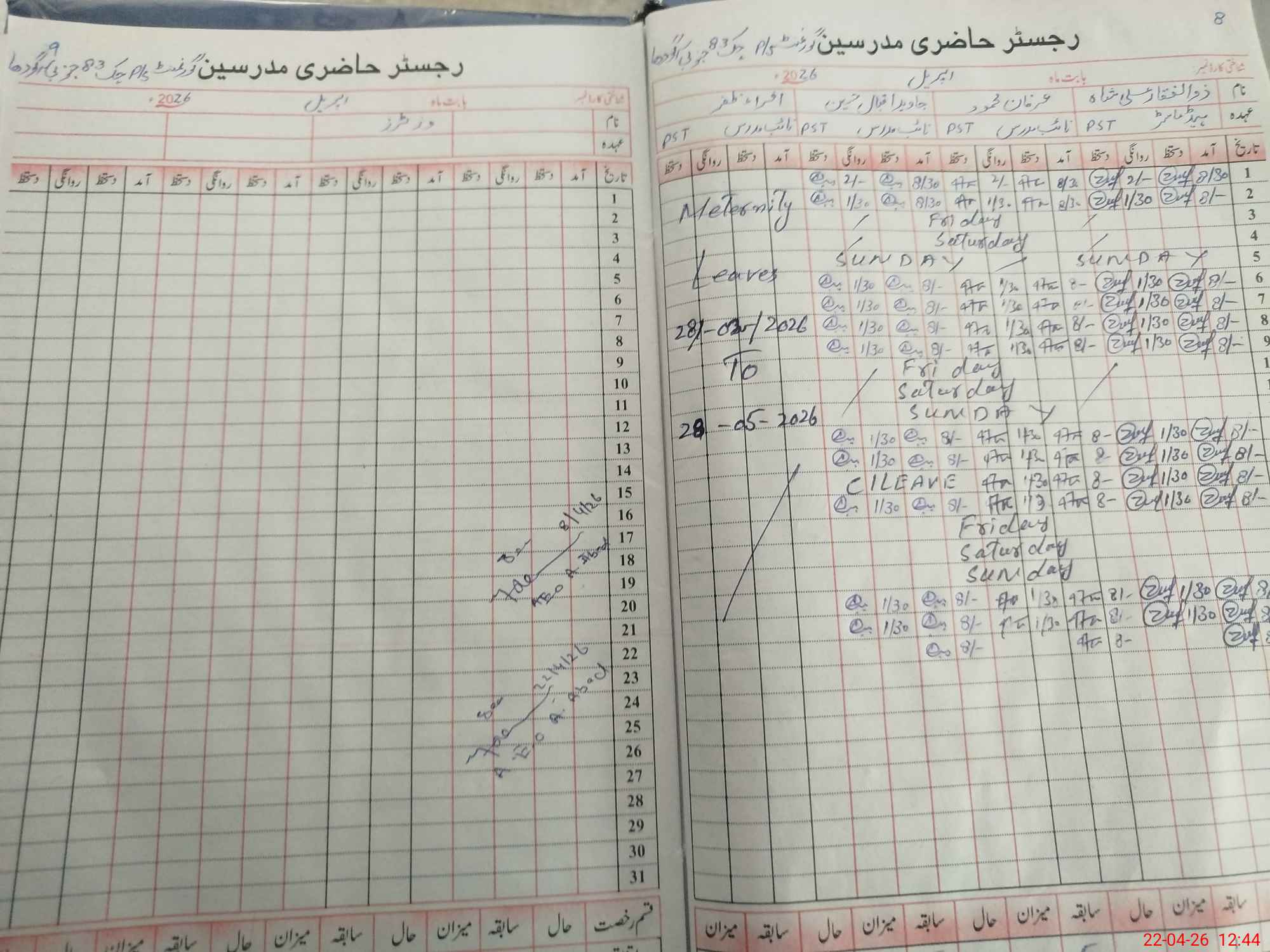 | Leave | Duty | Absent | Maternity | Medical | Ex- Pak |