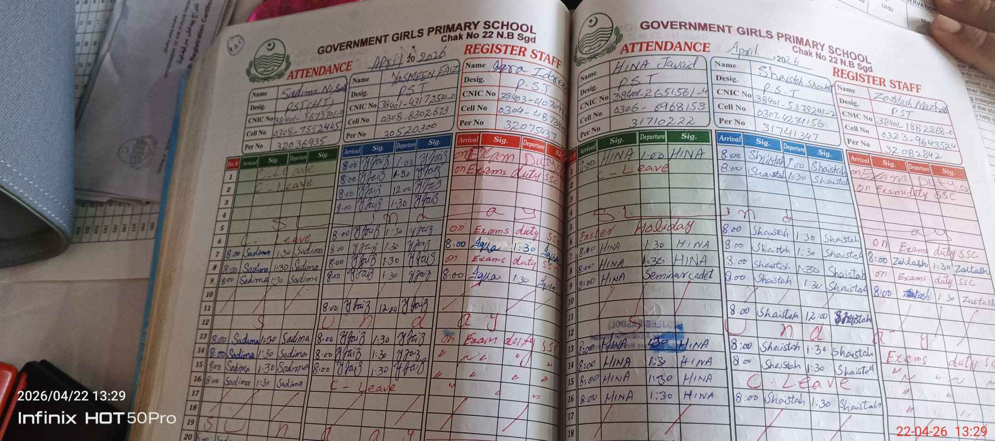| CNIC | Full Name | Designation | R/C | Absence During Last Calender Month |