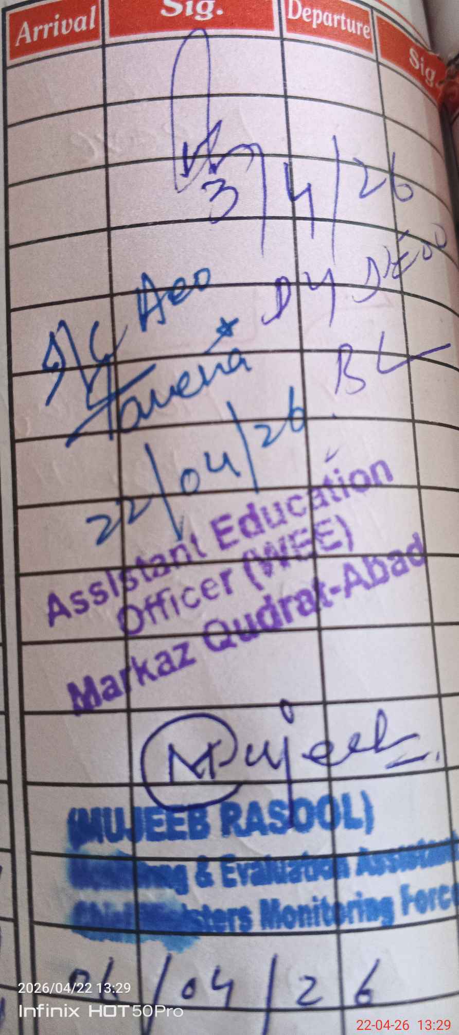 | Sr.No. | Visit Date | Designation | ||