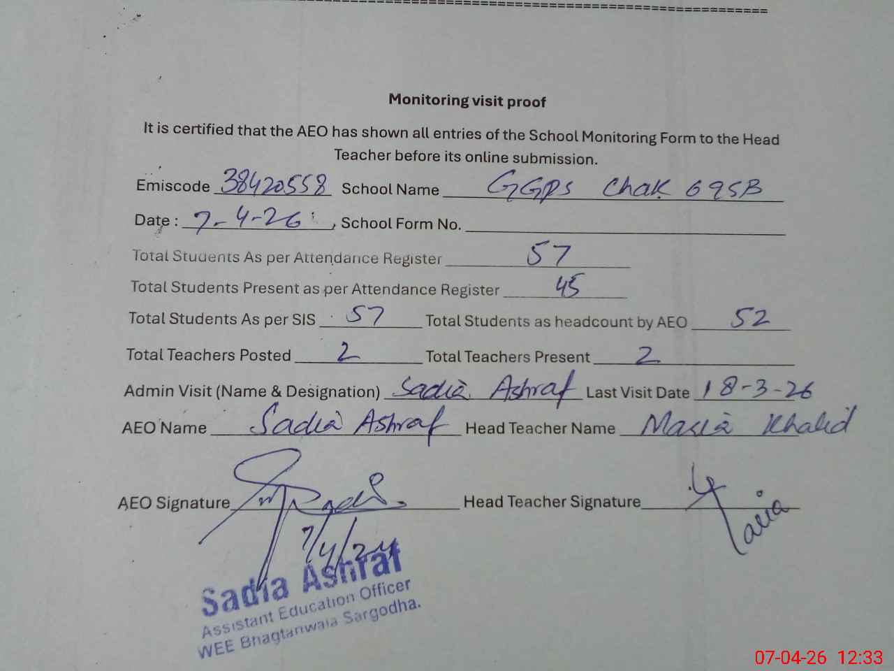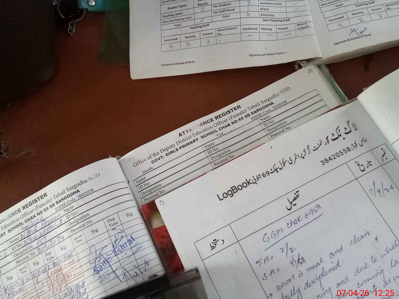 | EMIS Code: 38420558 | Name of School: GGPS CHAK NO.69 SB | |||