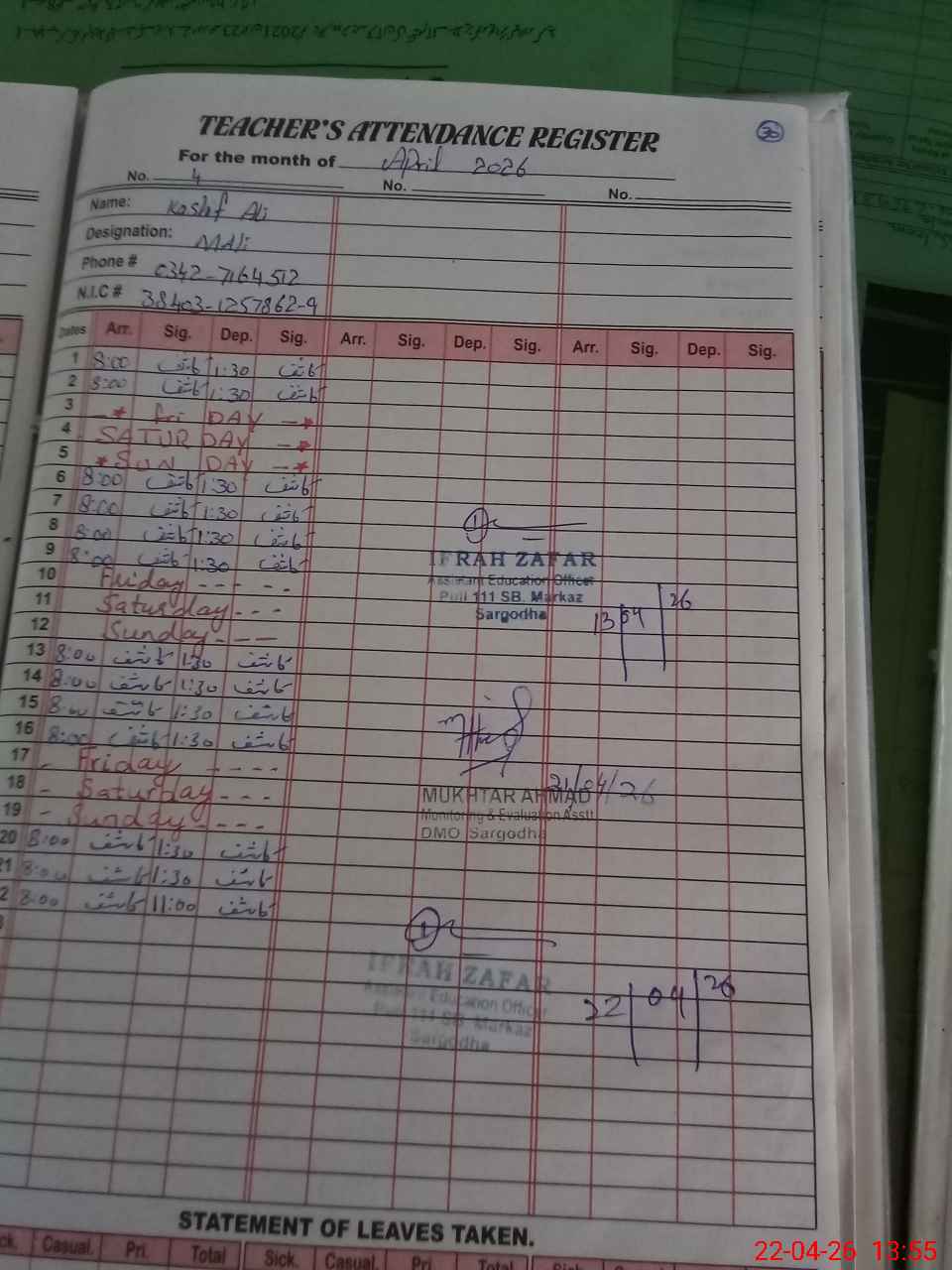 | Name: NI**** SA**** Designation: (School Headmaster's/Headmistress's) PST Phone/Cell Number: 03**** |