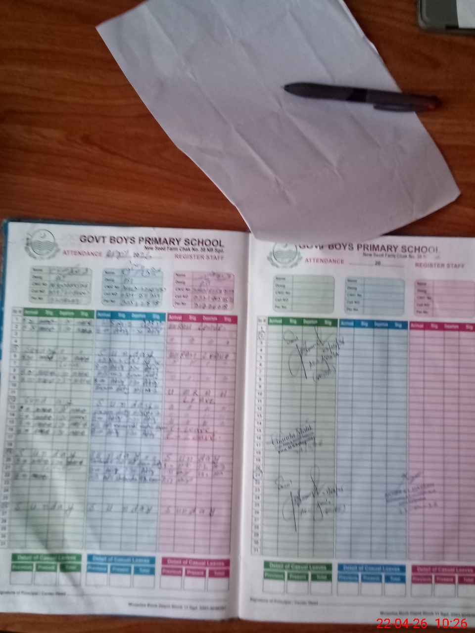 | CNIC | Full Name | Designation | R/C | Absence During Last Calender Month |
