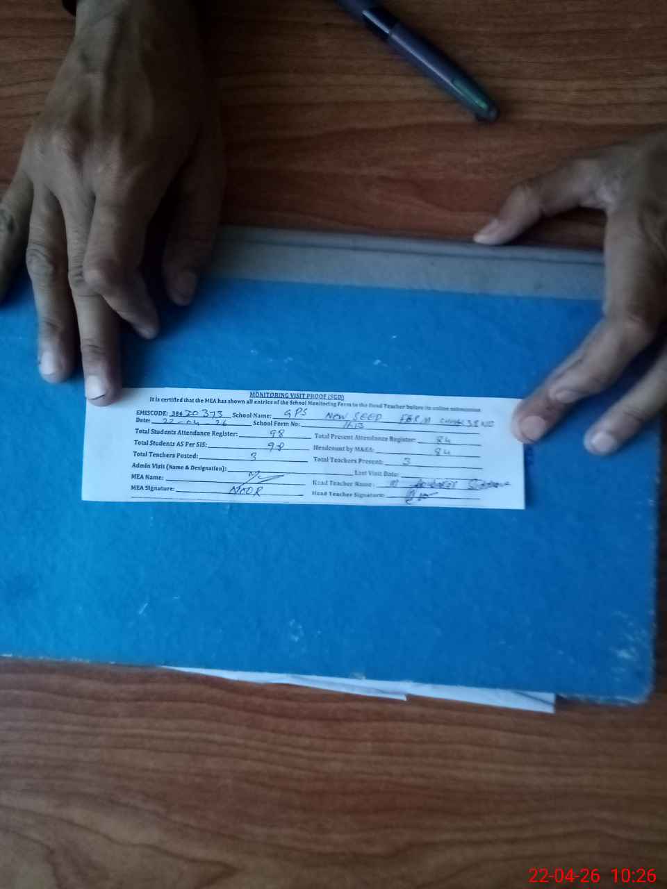 | Attendance Register | Head Teacher | MEA with School | Visit Proof |