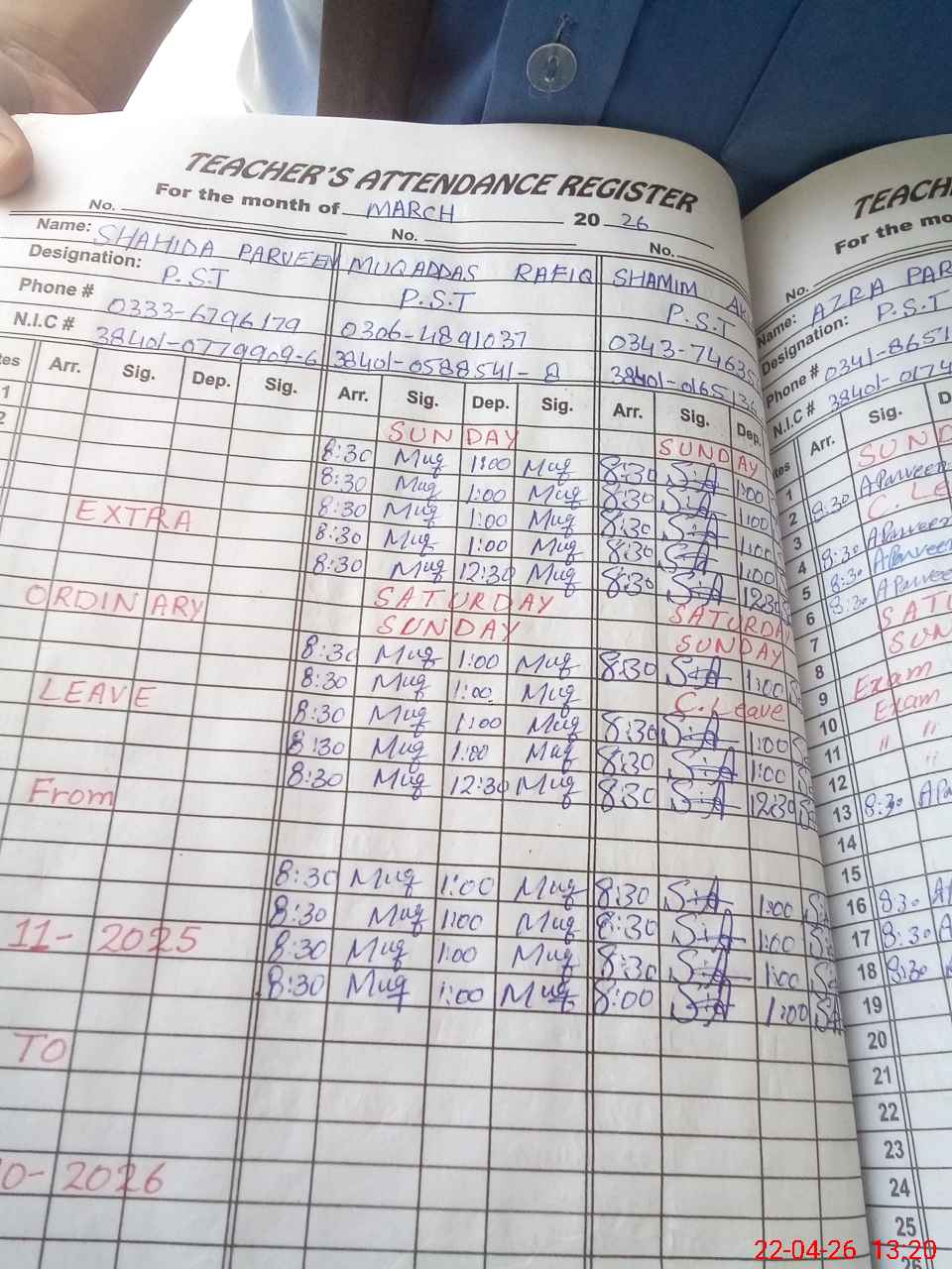 | Name: Mu**** Ra**** Designation: (School Headmaster's/Headmistress's) PST Phone/Cell Number: 03**** |