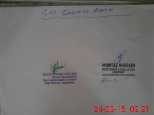 | EMIS Code: 38420029 | Name of School: GHS JAMIA QASIM UL ULOOM JINNAH COLONY | |||