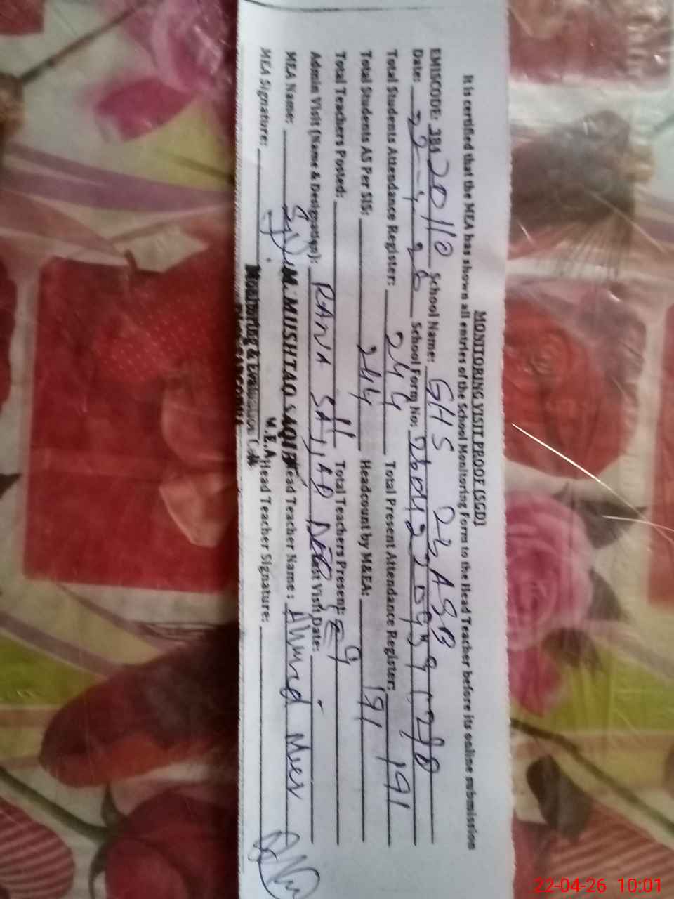 | EMIS Code: 38420110 | Name of School: GHS CHAK NO.23 ASB | |||