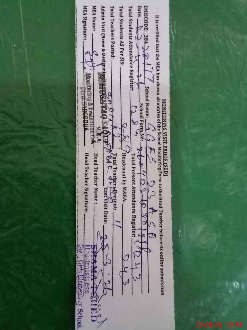 | EMIS Code: 38420177 | Name of School: GGES CHAK NO.23 ASB | |||