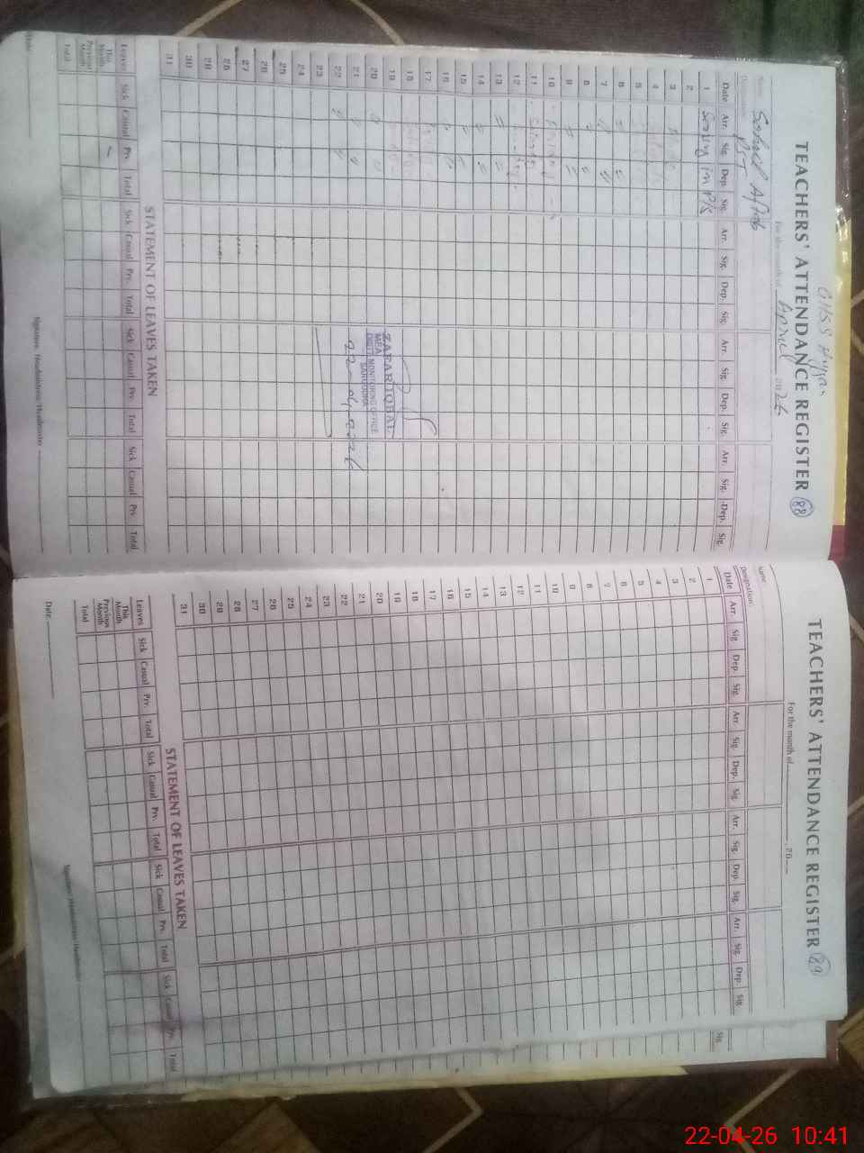 | No. of Students Present - Female | 0 | 0 | 0 | 0 | 0 | 0 | 0 | 0 | 0 | 0 | 0 | 0 | 0 | 0 | 0 | |