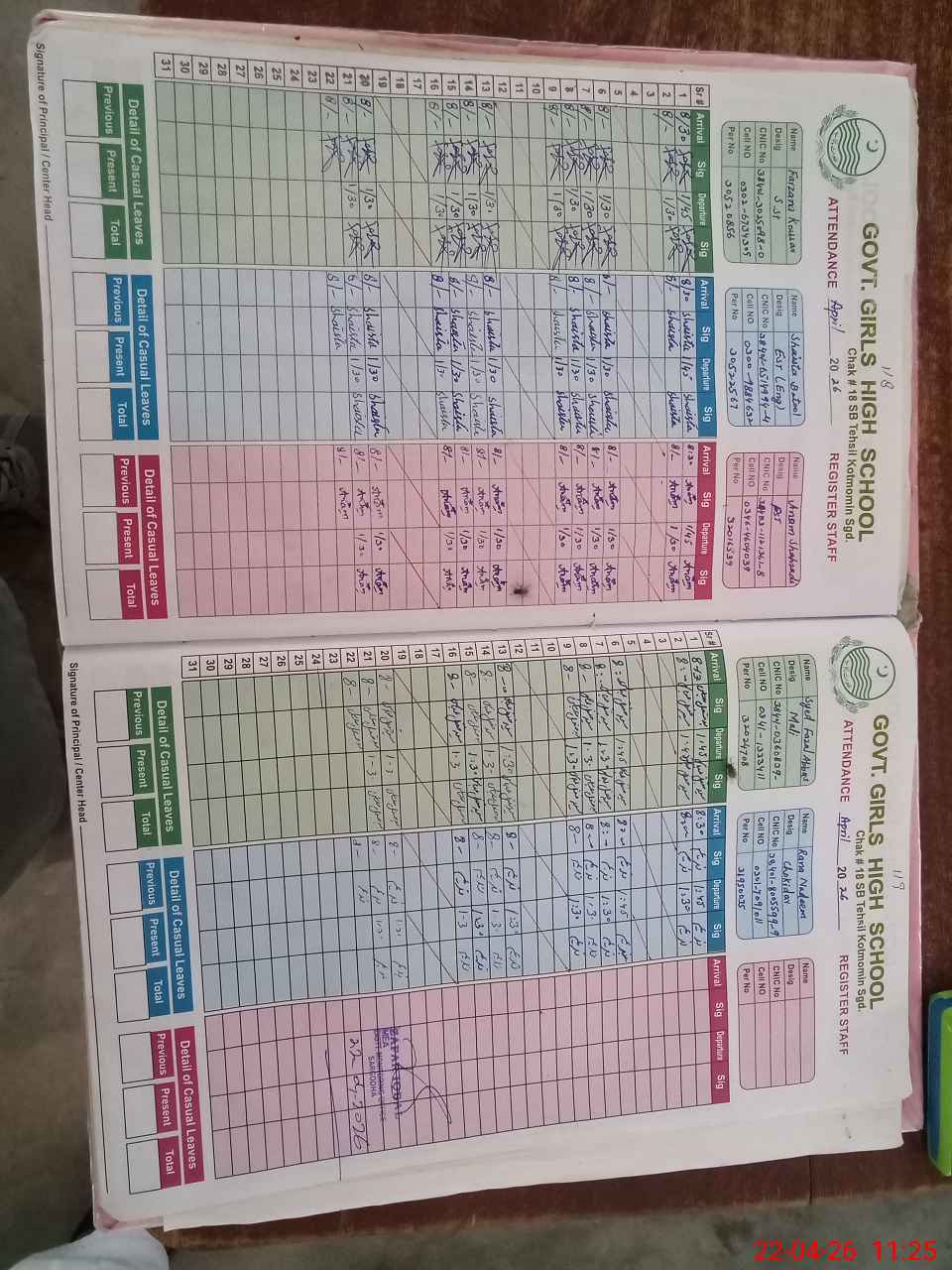 | CNIC | Full Name | Designation | R/C | Absence during last cal. month |