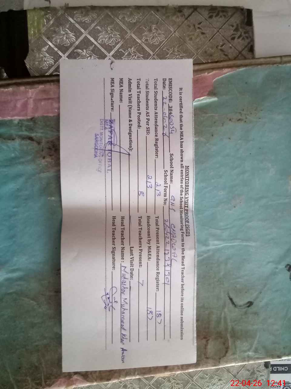| EMIS Code: 38460054 | Name of School: GHS CHAUWAL | |||