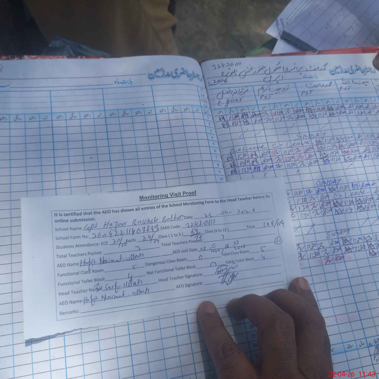 | EMIS Code: 32420111 | Name of School: GPS HAZOOR BAKHSH BALHORA | |||