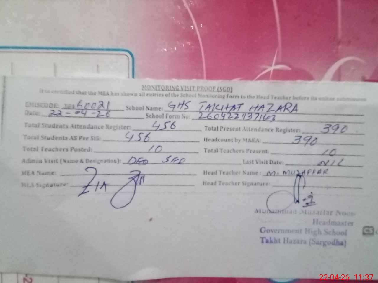 | EMIS Code: 38460021 | Name of School: GHS TAKHAT HAZARA | |||
