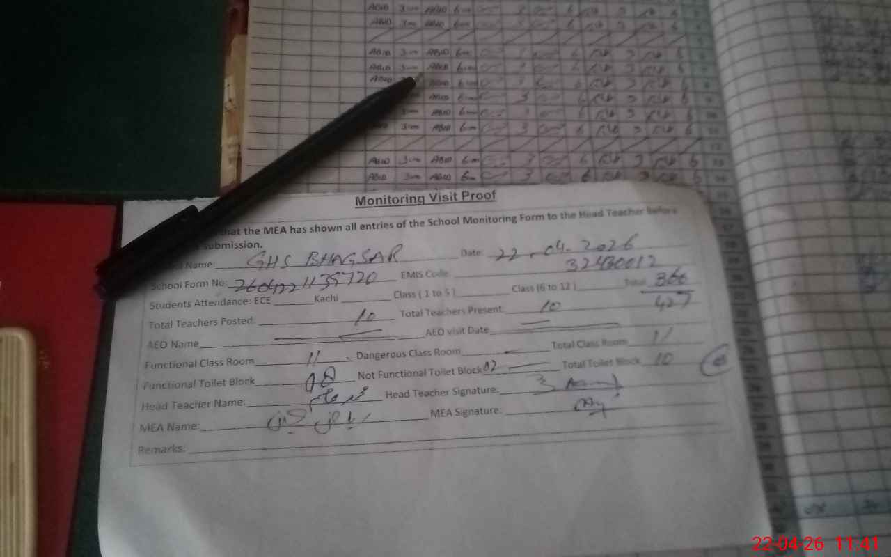 | EMIS Code: 32430012 | Name of School: GHS BHAGSAR | |||
