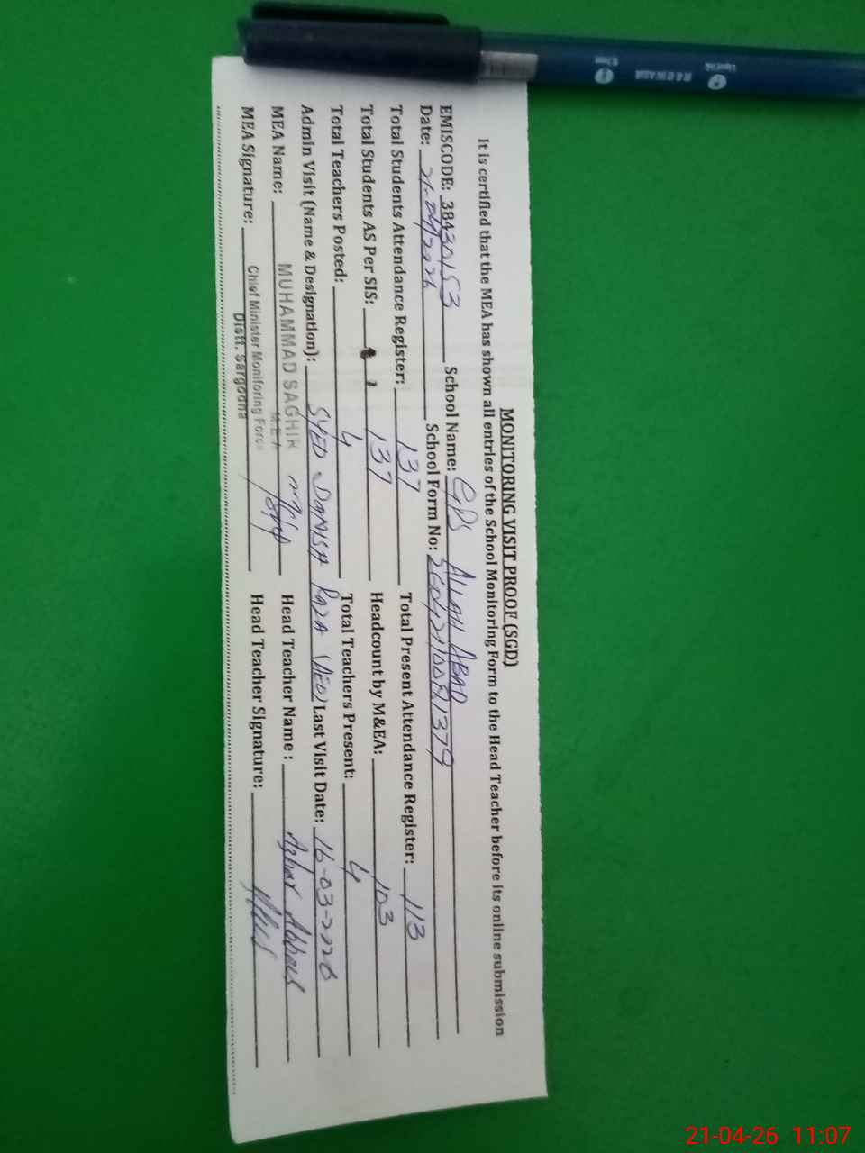 | EMIS Code: 38430153 | Name of School: GPS ALLAH ABAD | |||