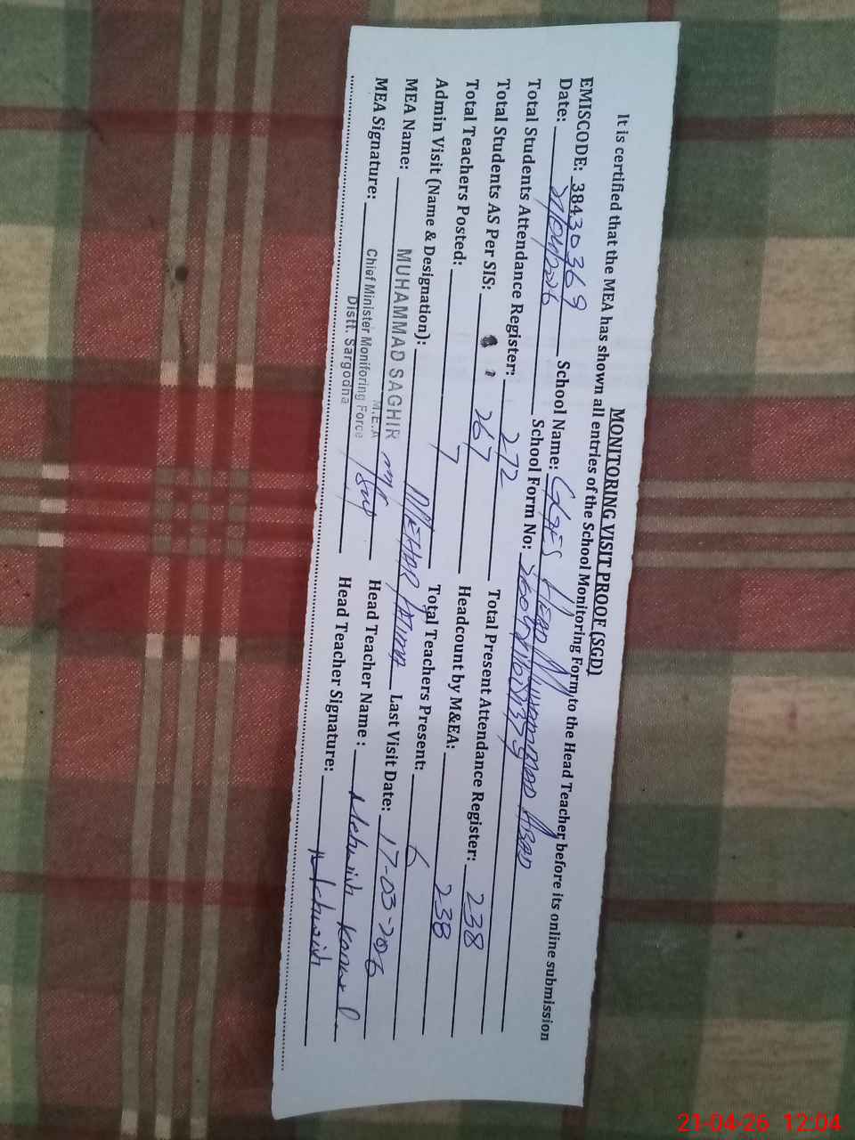 | EMIS Code: 38430369 | Name of School: GGES HEAD MUHAMMAD ABAD (Azad Colony) | |||