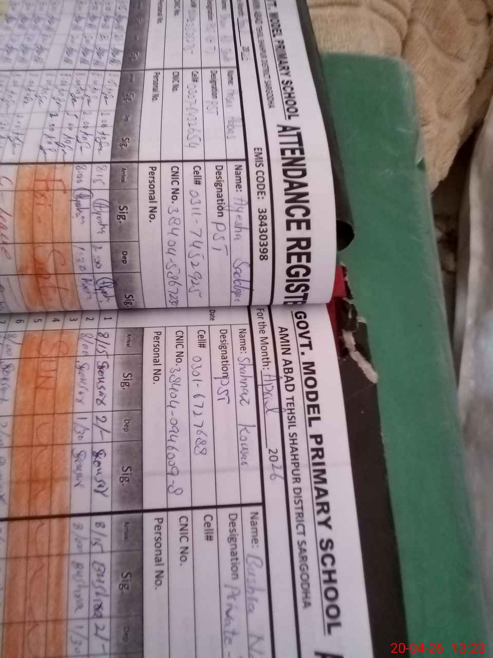 | Name: IH**** AL**** SH**** Designation: (School Headmaster's/Headmistress's) PST Phone/Cell Number: 03**** |