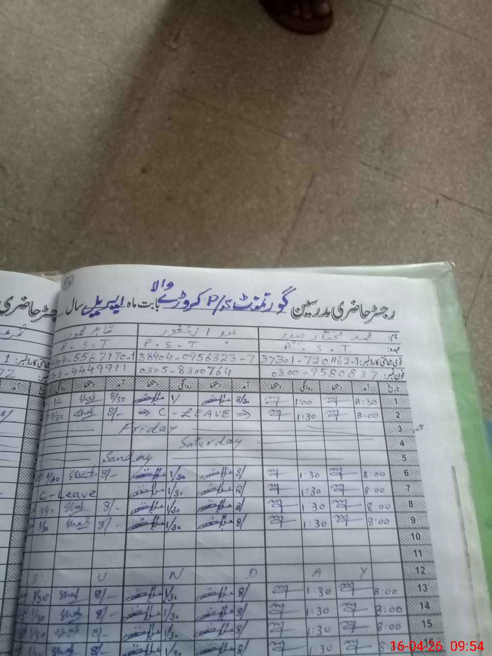 | 38**** | Sa**** Ab**** | PST Science/Maths | Regular | 0 | 0 | 0 | 0 | 0 | 0 | 0 | 0 | 0 | Casual |
