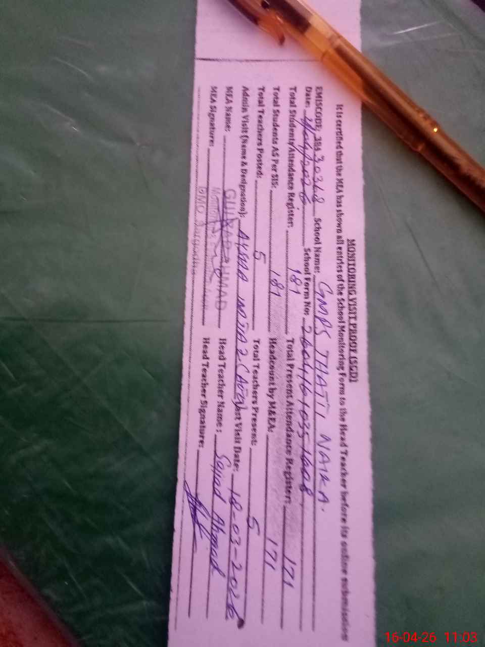 | EMIS Code: 38430368 | Name of School: GMPS THATTI NAIKA | |||