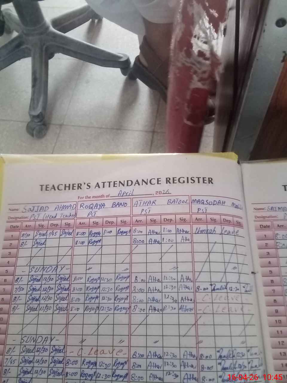 | Name: SA**** AH**** Designation: (School Headmaster's/Headmistress's) PST Phone/Cell Number: 03**** |