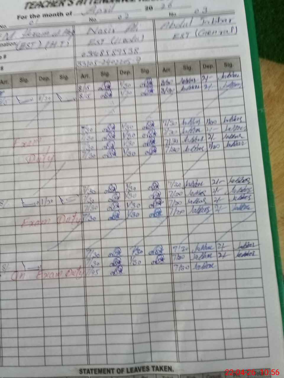 | 33**** | Mu**** Ra**** | PST Arts | Regular | 0 | 0 | 0 | 0 | 0 | 0 | 0 | 0 | 0 | Exam Duty |