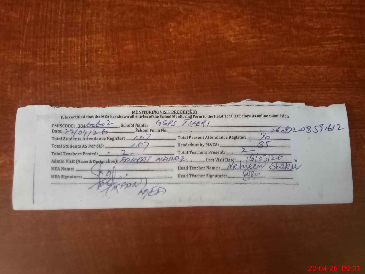 | EMIS Code: 38460602 | Name of School: GGPS THEHRI | |||