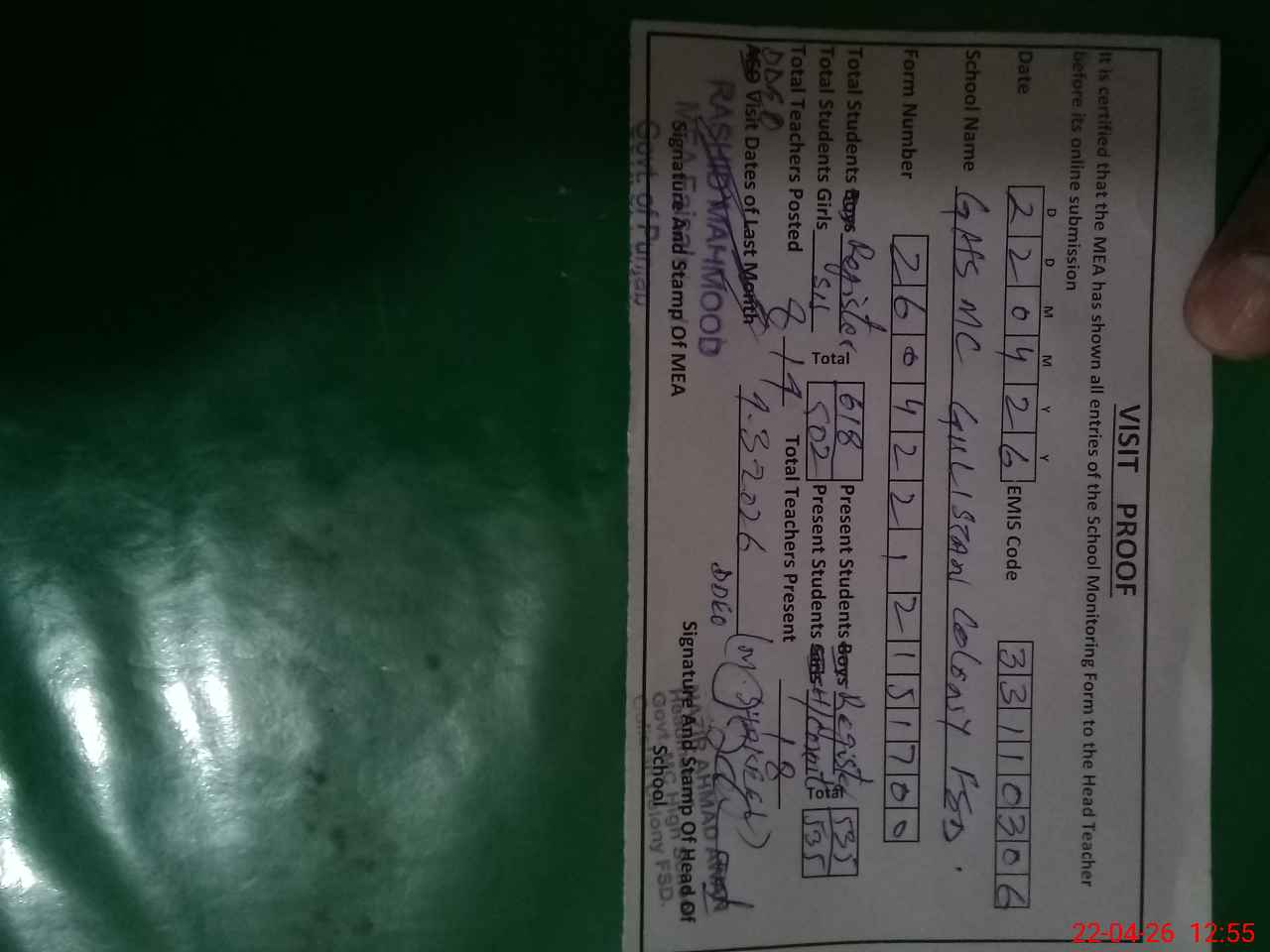 | Certified that this School was Inspected by the Undersigned MEA/DMO Today and the Information Stated Above is as Per Record. | |||||