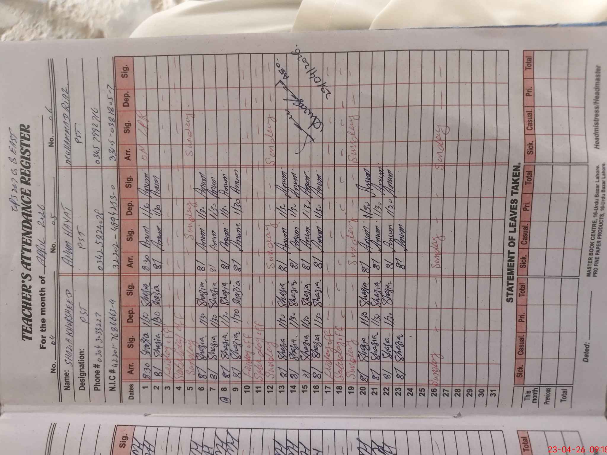 | Name: RI**** AL**** SH**** Designation: (School Headmaster's/Headmistress's) PST Phone/Cell Number: 03**** |
