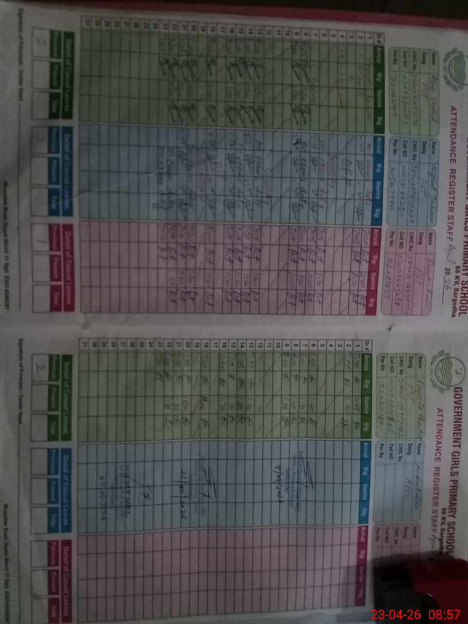 | Name: AS**** SH**** Designation: (School Headmaster's/Headmistress's) PST Phone/Cell Number: 03**** |