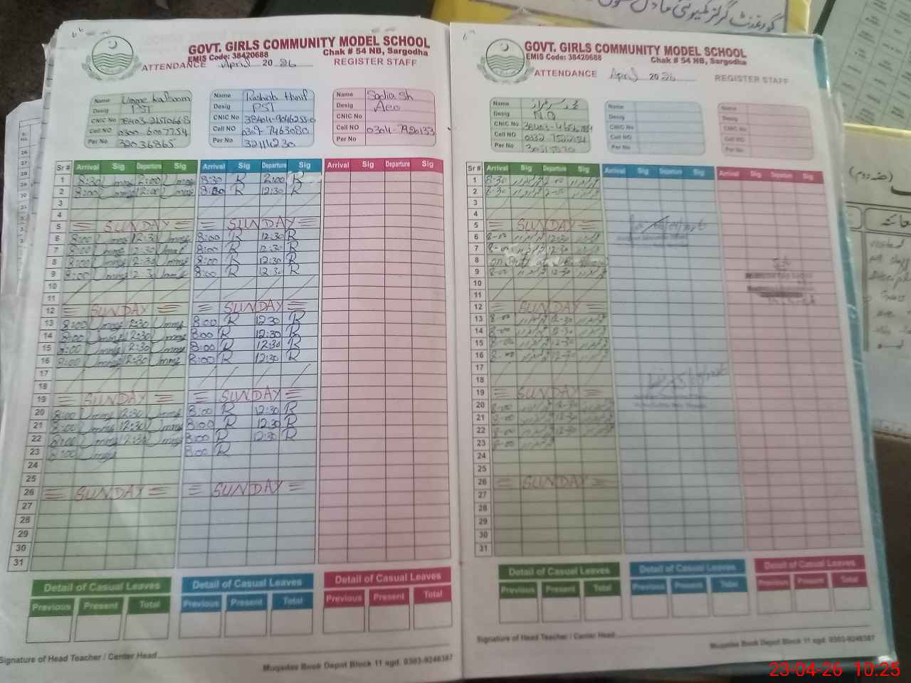| CNIC | Full Name | Designation | R/C | Absence During Last Calender Month |